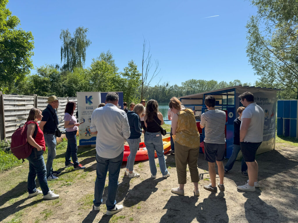Après des entretiens avec des personnes clés de l’écosystème du tourisme fluvial, des rencontres opportunes et plusieurs tests, le premier prototype de Book’n’Kayak est installé à la base de loisirs de Pontpoint (60) en mars 2025.